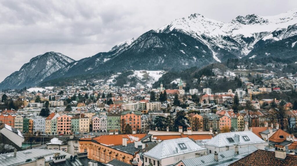 インスブルックの旧市街は、アルプスの山並みが背景に見えるため、まるでCGのような非現実的な写真が撮れますよ📸