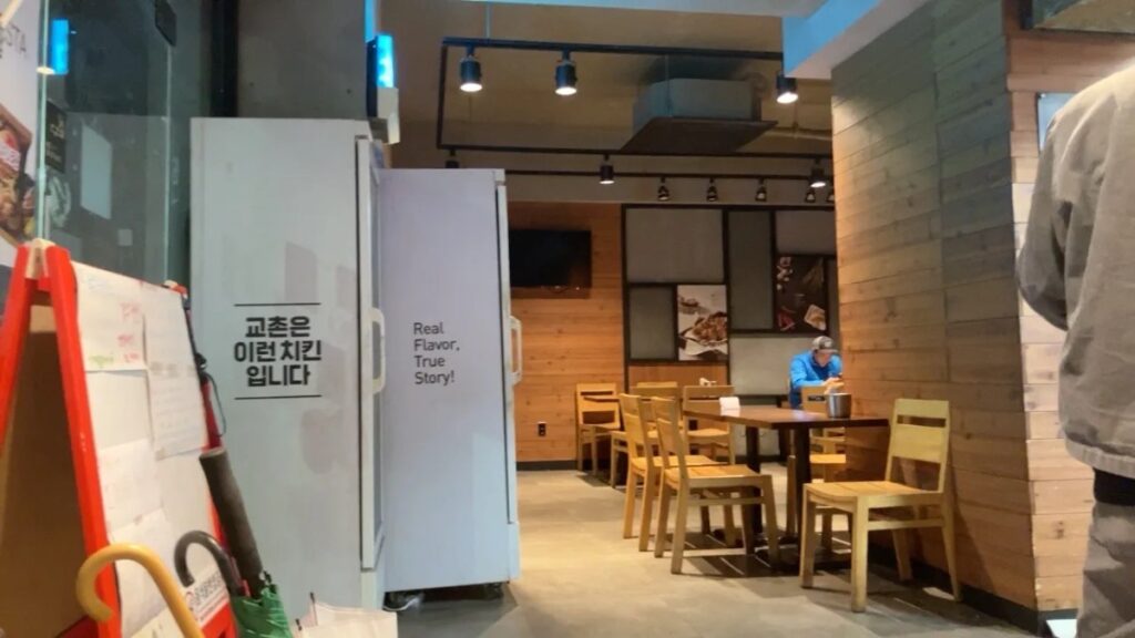 ただ、このお店は7000ウォンくらいで6Pのチキンを売ってくれてるので、1人旅でも行きやすいです!