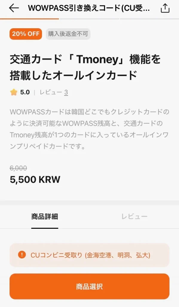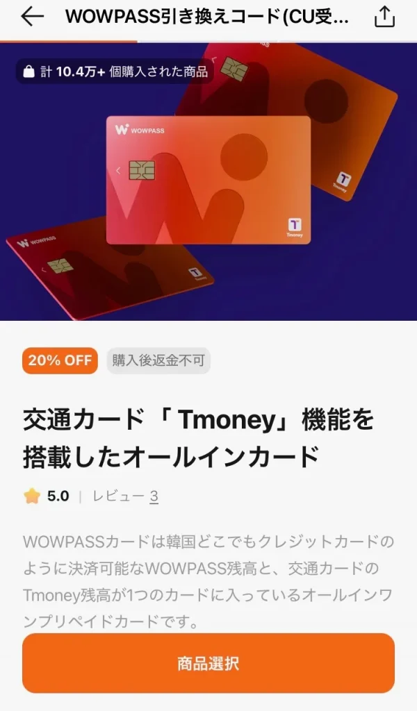 WOWPASSアプリ上の話ですが、T-moneyに直接チャージはできません!